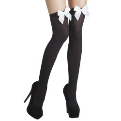 Collant Opaque Noir Avec Noeud Blanc