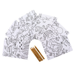 6 Feuilles à Colorier Dinosaure avec 4 Crayons