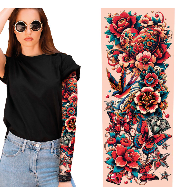Manche En Tissu Tatouage Multicolore 2 Pièces