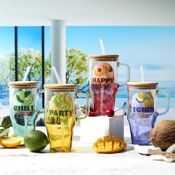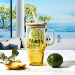 Ajoutez une note festive à vos boissons avec le mini mug Miami en verre wording 65 cl. Sa grande contenance est parfaite pour savourer cocktails, jus ou boissons fraîches, tandis que son couvercle pratique et sa paille en verre offrent confort et praticité. Avec ses designs colorés et ses messages fun comme "Tchin Tchin", "Party Time" ou "Happy Hour", il est l’allié idéal pour partager des moments conviviaux entre amis ou en famille.