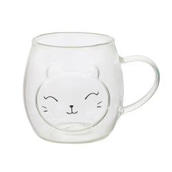 Avec ses adorables motifs d'animaux (ours, chat) et son design en verre transparent, ce mug ajoute une touche ludique et élégante à vos pauses café ou thé.
