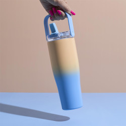 Ce mug de transport mixe praticité et tendance avec son dégradé tie and dye ultra stylé. Il vous suit du bureau à la salle de sport sans perdre une goutte de bonne humeur. Grande capacité 900 ml, anse rigide pratique, format compatible porte-gobelet : l'accessoire feel good à emporter partout.