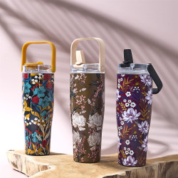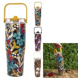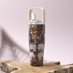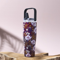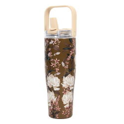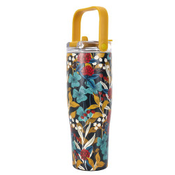 Ce mug de transport affirme son style avec un motif floral éclatant qui réveille instantanément la routine.