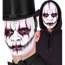 Son expression figée, entre rictus malsain et regard vide, évoque un personnage psychopathe, parfait pour Halloween, conventions horrifiques, ou soirées à thème.
