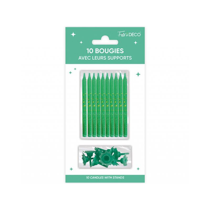 Bougies Paillettées Vert Menthe 10 Pièces Avec Supports